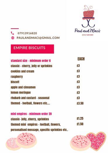 Our Empire Biscuits come in various shapes, sizes and flavours to suit any occasion. From the Empire stack , giant empire , mini empires to personalised empires.