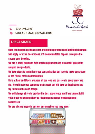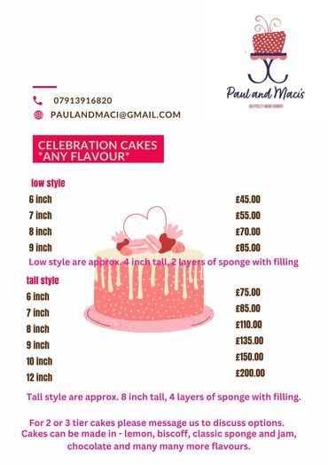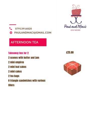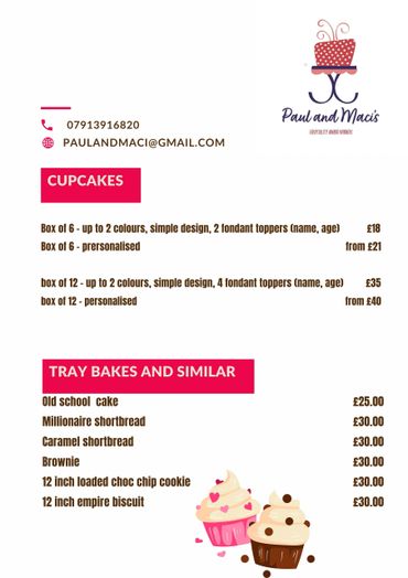 Paulandmaciorders@gmail.com 07913916820 - Cake orders 0141 433 7661-The Café 07702563415 -DJ enquiries